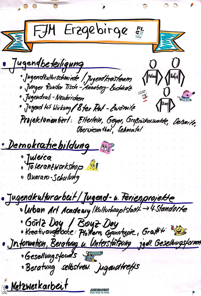 Als Jugendmanager*innen sind wir im gesamten Erzgebirgskreis unterwegs. Zu den Hauptschwerpunkten unserer Tätigkeit gehören Jugendprojektmanagement, Demokratiebildung im schulischen und außerschulischen Bereich, (kommunale) Jugendbeteiligung sowie Jugendkulturarbeit